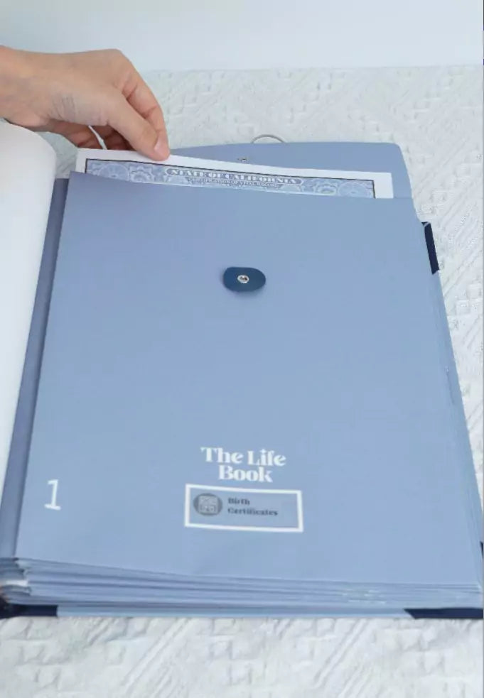 The Life Book is perfect for everything from birth certificates and tax papers to family photos and keepsakes. It's built to hold documents of all sizes, so you can keep everything important in one place, neatly organized.